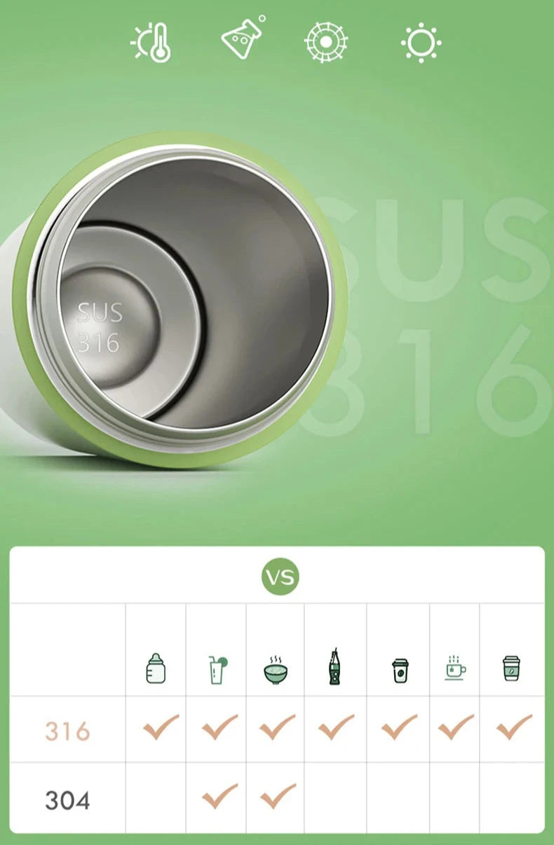 Entdecke diese elegante Thermosflasche, die nicht nur ein Hingucker ist, sondern auch mit innovativen Features überzeugt. Hergestellt aus hochwertigem 316 Edelstahl, garantiert sie Langlebigkeit und erstklassige Isolierleistung – deine Getränke bleiben mindestens 10 Stunden warm oder kalt.